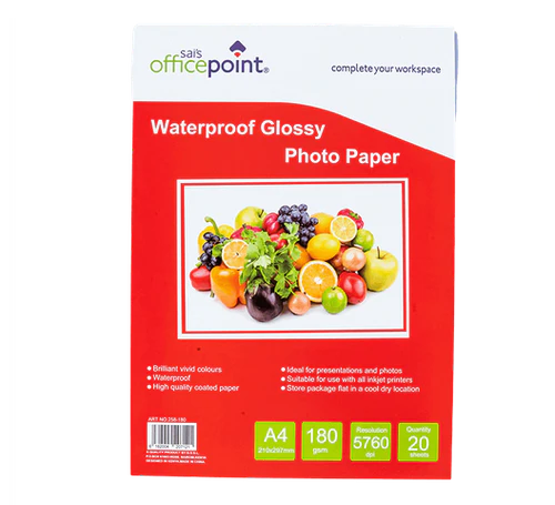 Office Point Glossy Photo Paper 258-200 GSM for Epson/ Brother sheet of 20 – OfficePointPhotoPaper is designed delivering professional-grade printing results with vivid colors and crisp details. Each pack contains 20 glossy sheets that enhance photographs and graphics with a bright, high-shine finish. Designed for use with Epson and Brother inkjet printers, this paper is suitable for producing photographs, brochures, posters, and presentation materials that require a polished, long-lasting appearance.